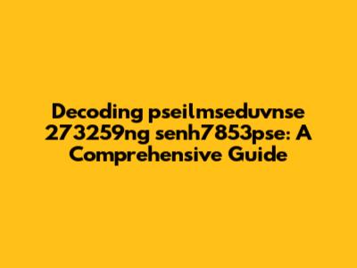 Decoding Pseilmseduvnse 273259ng Senh7853pse: A Comprehensive Guide