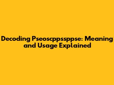 Decoding Pseoscppssppse: Meaning And Usage Explained