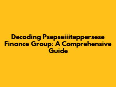 Decoding Psepseiiiteppersese Finance Group: A Comprehensive Guide