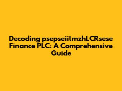 Hey everyone! Today, we're diving deep into the world of psepseiilmzhLCRsese Finance PLC. I know, it's a bit of a mouthful, right? But don't worry, we're going to break it down piece by piece, so you'll understand everything about this financial powerhouse. We'll explore what it is, what it does, and why it matters in the grand scheme of finance. Get ready for a deep dive, guys – it's going to be an exciting ride!