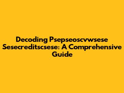 Decoding Psepseoscvwsese Sesecreditscsese: A Comprehensive Guide