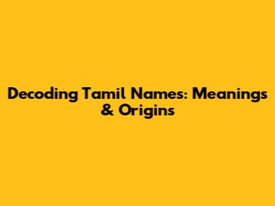 Decoding Tamil Names: Meanings & Origins