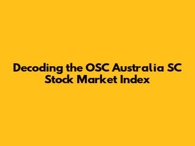 Hey finance enthusiasts! Ever heard of the OSC Australia SC Stock Market Index? If you're into the Aussie stock market, or even just starting to dip your toes in, this index is super important. Think of it as a snapshot of how some of the biggest and most active companies in Australia are doing. But what exactly is it, and why should you care? Let's dive in and break down everything you need to know, from its purpose and structure to its impact on your investment decisions, so that everyone can understand it.