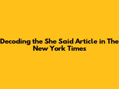 Decoding The She Said Article In The New York Times