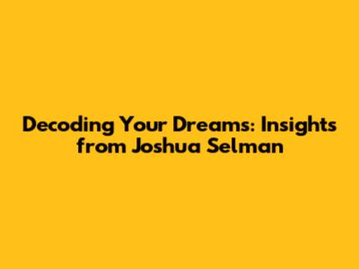 Decoding Your Dreams: Insights From Joshua Selman