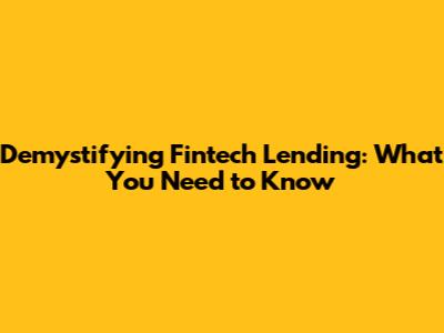 Demystifying Fintech Lending: What You Need To Know
