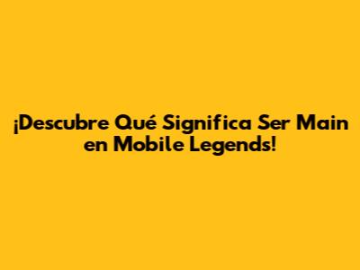 ¡Descubre Qué Significa Ser Main En Mobile Legends!