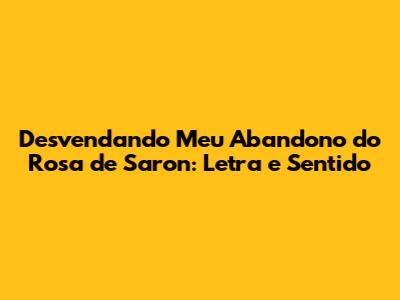 Hey guys! Ever found yourselves completely captivated by a song? I mean, like, truly feeling every word, every note? Well, for me, one of those songs is "Meu Abandono" by Rosa de Saron. This track isn't just a collection of sounds; it's a journey, a story, a deep dive into emotions that resonate with so many of us. Today, we're gonna break down the lyrics of "Meu Abandono" and explore the powerful meanings hidden within. Buckle up, because we're about to get real, exploring the nuances that make this song such a poignant and beloved piece of music. Trust me, by the end of this, you'll see "Meu Abandono" in a whole new light.