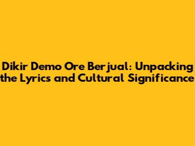 Hey guys! Ever stumbled upon a song that just grabs you, even if you don't fully get the words? That's the vibe with "Dikir Demo Ore Berjual." It's a tune that resonates with a lot of people, and today, we're diving deep into the lyrics, the meaning, and the overall cultural significance. Get ready to explore what makes this song so special!
