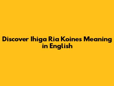 Discover Ihiga Ria Koine's Meaning In English