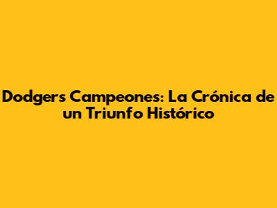 Dodgers Campeones: La Crónica De Un Triunfo Histórico