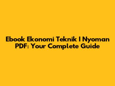Are you looking for Ebook Ekonomi Teknik I Nyoman PDF? Well, you've come to the right place! In this article, we will discuss everything you need to know about this book. Economics Engineering is a field that combines economic principles with engineering practices to make informed decisions. In this comprehensive guide, we will explore the key concepts covered in the ebook, its significance, and how you can benefit from reading it. So, grab a cup of coffee, sit back, and let’s dive in!