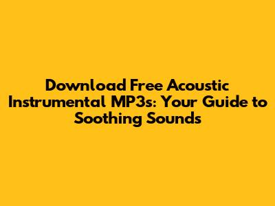 Hey music lovers! Ready to dive into the world of acoustic instrumental mp3 downloads? If you're anything like me, you probably find solace in the gentle strum of a guitar, the calming flow of a piano, or the uplifting sounds of a ukulele. Finding the right tunes can be a game-changer whether you're working, studying, relaxing, or just need some background music. So, let's explore how to get your hands on some fantastic free acoustic instrumental mp3 downloads and elevate your audio experience. Let's make this your go-to guide for finding the best acoustic instrumental music!