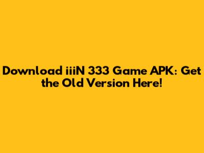 Download IiiN 333 Game APK: Get The Old Version Here!