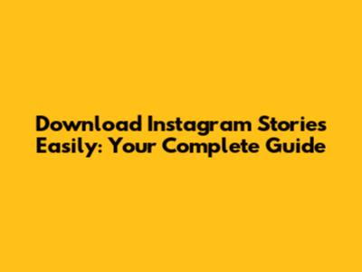Download Instagram Stories Easily: Your Complete Guide