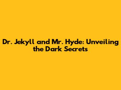 Dr. Jekyll And Mr. Hyde: Unveiling The Dark Secrets