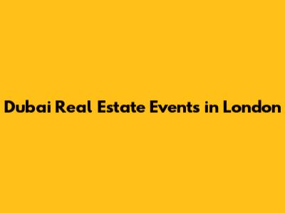 Dubai Real Estate Events In London