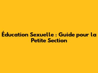 Éducation Sexuelle : Guide Pour La Petite Section