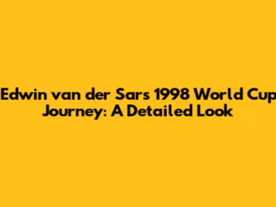 Edwin Van Der Sar's 1998 World Cup Journey: A Detailed Look