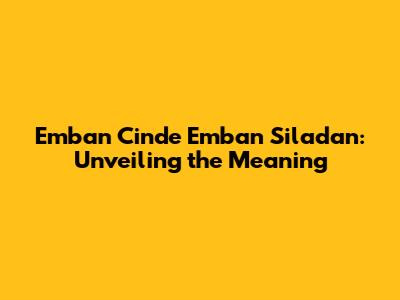 Emban Cinde Emban Siladan: Unveiling The Meaning