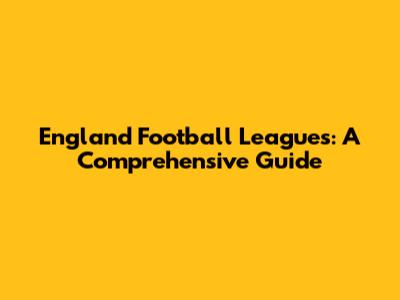 England Football Leagues: A Comprehensive Guide