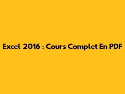 Excel 2016 : Cours Complet En PDF