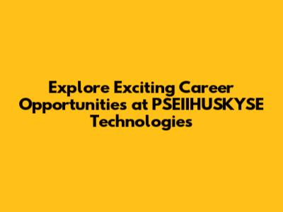 At PSEIIHUSKYSE Technologies, we're more than just a company; we're a community. We believe in fostering a supportive, inclusive, and innovative environment where everyone can thrive. If you're looking for a career that's both challenging and rewarding, we invite you to explore the opportunities at PSEIIHUSKYSE. We can’t wait to welcome you aboard and embark on this exciting journey together. Join us and be a part of something extraordinary. We’re excited to see what the future holds, and we'd love for you to be a part of it. Check out our careers page today and start your adventure with us. Let's build the future, together!