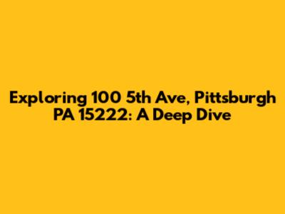 Hey guys! Ever wondered about 100 5th Ave in Pittsburgh, PA 15222? Well, buckle up, because we're about to take a deep dive and uncover everything there is to know about this address. From its history and significance to the businesses that call it home, we'll explore every nook and cranny. This isn't just a simple address; it's a hub of activity, a piece of Pittsburgh's vibrant puzzle. Get ready to learn about its architecture, the people who work there, and maybe even some cool secrets. Let's start this adventure together, exploring the ins and outs of 100 5th Ave, Pittsburgh, PA 15222!