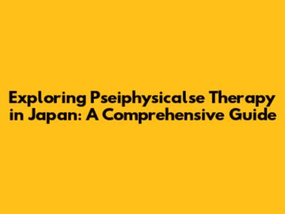 Exploring Pseiphysicalse Therapy In Japan: A Comprehensive Guide