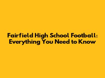 Fairfield High School Football: Everything You Need To Know