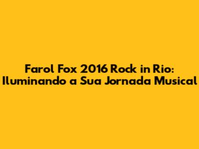 Com este guia completo, esperamos que você tenha encontrado todas as informações que precisava sobre o farol do Fox 2016 e sua relação com o Rock in Rio. Se tiver mais alguma dúvida ou precisar de ajuda, não hesite em procurar um profissional especializado ou consultar os recursos online. Boa estrada e aproveite a jornada!