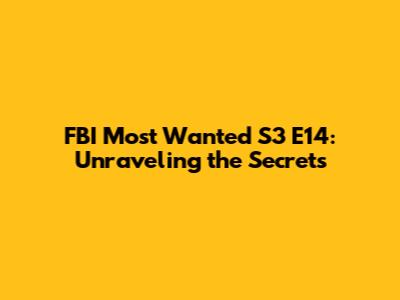 FBI Most Wanted S3 E14: Unraveling The Secrets