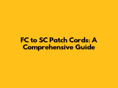 FC To SC Patch Cords: A Comprehensive Guide