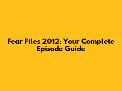 Fear Files 2012: Complete Episode Guide