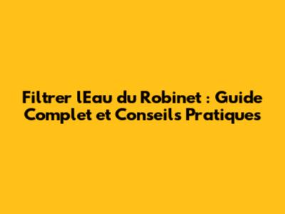 Filtrer L'Eau Du Robinet : Guide Complet Et Conseils Pratiques