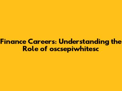 Finance Careers: Understanding The Role Of Oscsepiwhitesc
