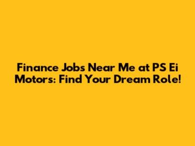 Finance Jobs Near Me At PS Ei Motors: Find Your Dream Role!