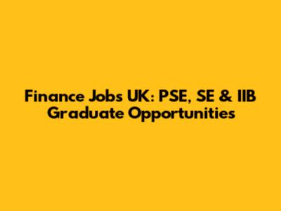 Finance Jobs UK: PSE, SE & IIB Graduate Opportunities