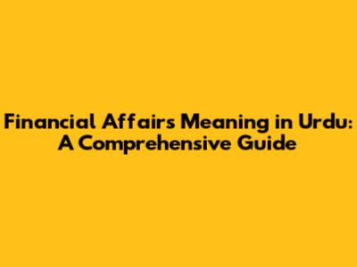 Financial Affairs In Urdu: A Simple Explanation