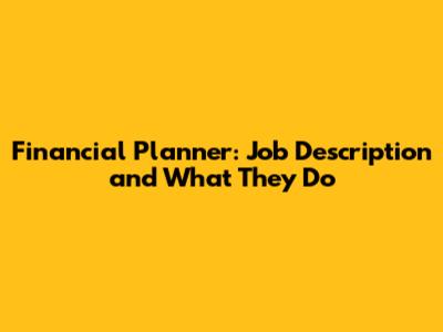 Financial Planner: Job Description And What They Do