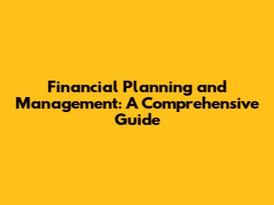 Financial Planning And Management: A Comprehensive Guide