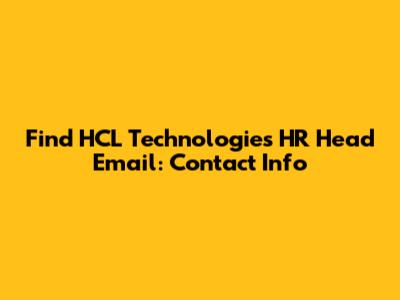 Find HCL Technologies HR Head Email: Contact Info
