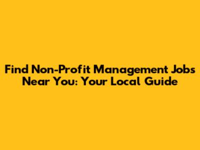 Find Non-Profit Management Jobs Locally