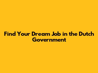 Find Your Dream Job In The Dutch Government