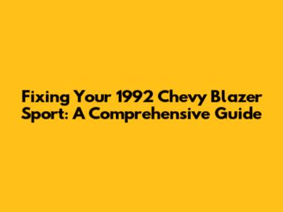 Fixing Your 1992 Chevy Blazer Sport: A Comprehensive Guide