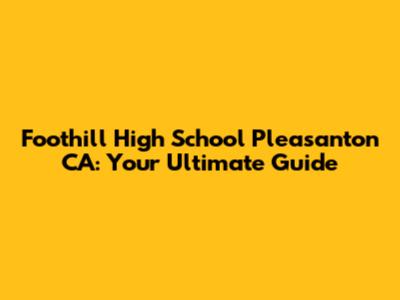 Foothill High School: Your Guide To Pleasanton's Top School