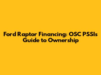 Hey guys, so you're dreaming of cruising in a Ford Raptor? Awesome choice! It's a beast of a truck, and the feeling of commanding all that power and capability is unmatched. But, let's be real, acquiring such a machine involves navigating the world of financing. That's where OSC PSSI steps in, your guide to understanding Ford Raptor financing. We're going to break down everything you need to know, from securing a loan to understanding the various options available, so you can make informed decisions and hit the road in your dream truck sooner rather than later. This guide will walk you through the entire process, including different financing avenues, things to consider before applying, and what to expect during the application process. Whether you're a first-time buyer or a seasoned truck enthusiast, understanding the nuances of financing is key to a smooth and enjoyable ownership experience. So, buckle up, and let's dive into the world of Ford Raptor financing!