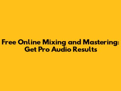 Free Online Mixing And Mastering: Get Pro Audio Results