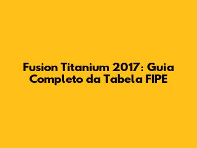 Olá, pessoal! Se você está pesquisando sobre o Fusion Titanium 2017 e quer entender tudo sobre a Tabela FIPE, chegou ao lugar certo. Neste guia completo, vamos mergulhar nos detalhes que importam: o que é a Tabela FIPE, como ela funciona, qual o preço do Fusion Titanium 2017 e como usar essas informações a seu favor. Vamos desvendar tudo de forma clara e direta, para que você possa tomar decisões informadas, seja para comprar, vender ou apenas por curiosidade. Então, prepare-se para uma leitura completa e cheia de informações valiosas!