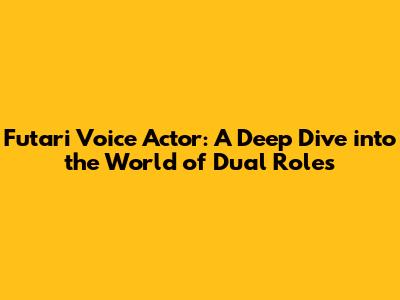 Futari Voice Actor: A Deep Dive Into The World Of Dual Roles
